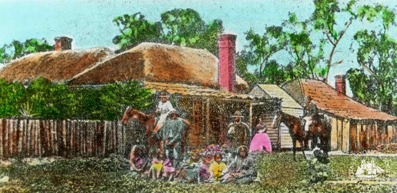 Inscription and MarksInscribed below image : "SWINTON STATION and Old Bark Hut, where Marcus Clarke spend three years / gaining Colonial experience"