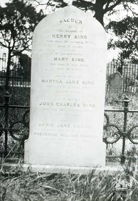 John Charles King, born in County Down, Ireland, first sailed to Sydney in 1838. Hearing good things about Port Phillip, he sailed back to Ireland, married, and returned to Australia in 1841 with his wife, parents and other family members, setting up business in Elizabeth Street, Melbourne. He was appointed the first town clerk in 1842.