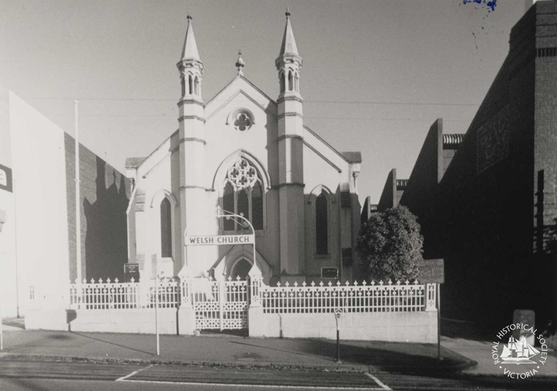 The first Welsh-language church service in the colony was held on 15 December 1852, and a chapel was first built on this land in La Trobe Street in 1857. The site was donated by the crown, for the construction of a Welsh Calvinist Methodist Church. The church was rebuilt in 1870 by architects Crouch and Wilson, and is now more than 150 years old. Initially all services were in Welsh, but English-language services were later introduced. Services are still held in Welsh twice a month, as well as in English.