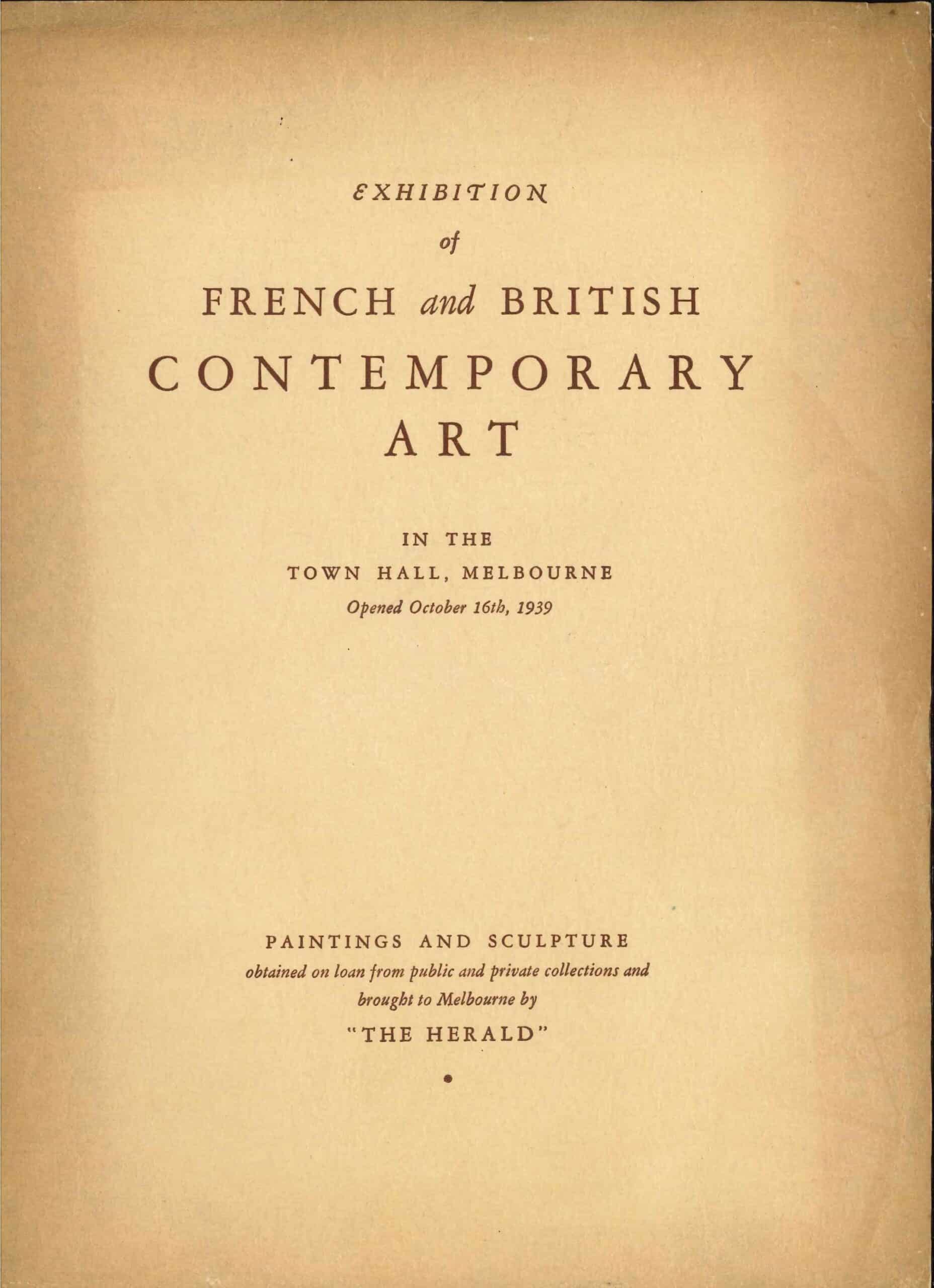 This is a catalogue of the artworks displayed in the “1939 Herald Exhibition of French and British Contemporary Art”. The exhibition is historically significant and included works by masters like Picasso, Matisse, and Van Gogh. The exhibition premiered in Australia just before World War II, and due to the war, its works remained in Australia until 1945. It sparked significant debate among the art establishment and the public, drawing both large audiences and controversy.