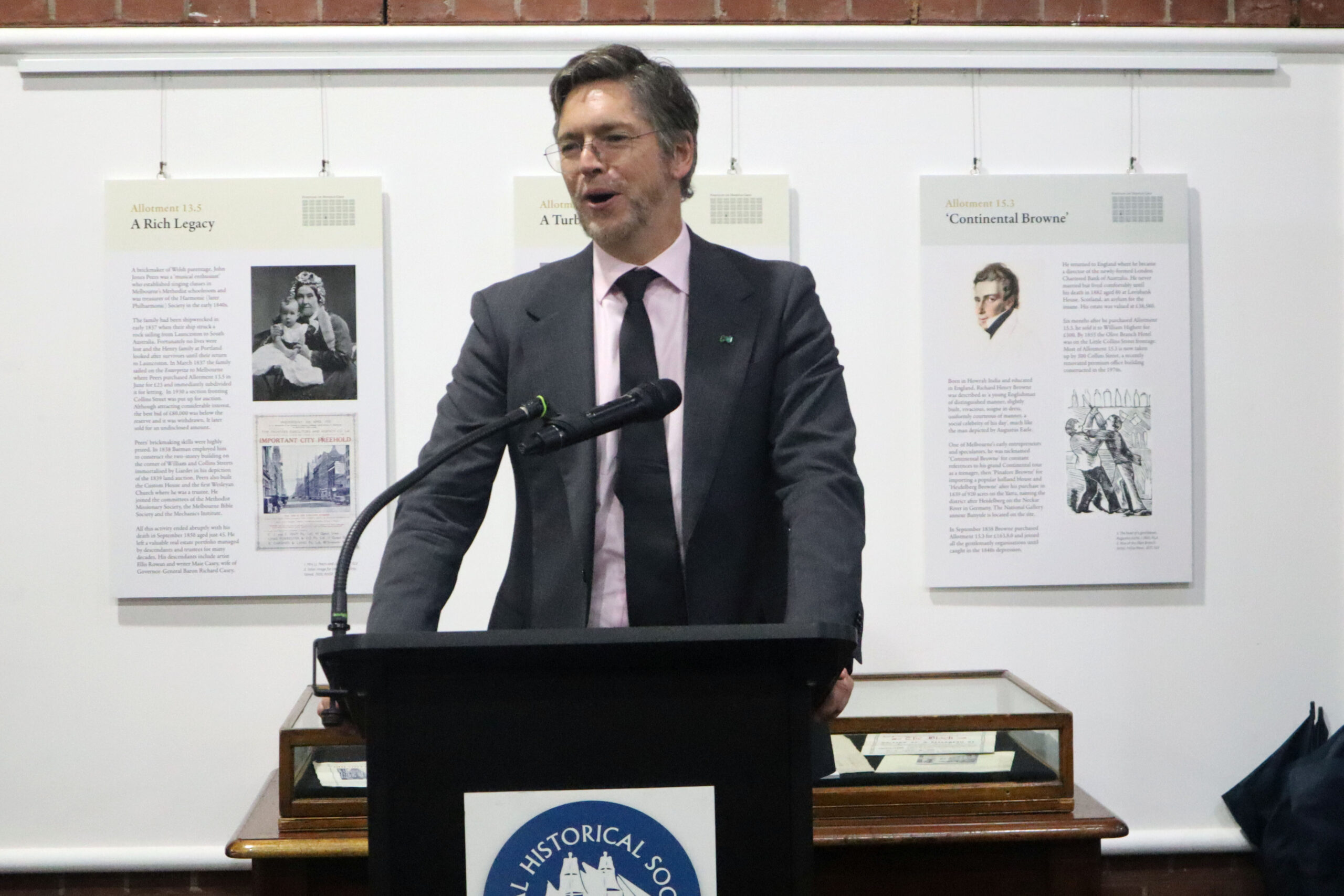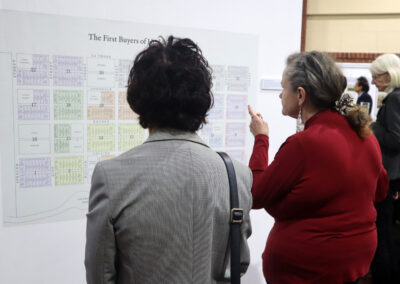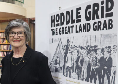 Last Thursday, the RHSV gallery space was a hub of excitement, history and soft cheese as we opened our newest exhibition, “Hoddle Grid: The Great Land Grab”. The exhibition explores the identities and contributions of 29 of the original 271 buyers