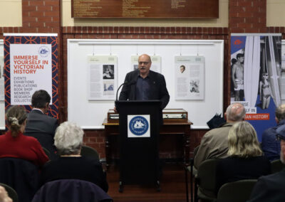 Curator Liz Rushen spoke at the launch, sharing the stories she uncovered while researching this exhibition. Her presentation was followed by the Lord Mayor of Melbourne, Nick Reece, who was in attendance to officially open the exhibition, which he called “a true gift to Melbourne”.