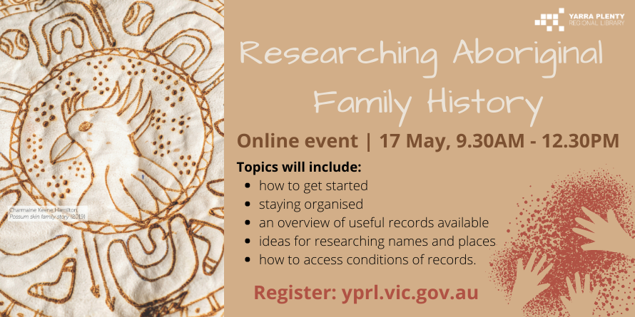 OnlineTracing Aboriginal and Torres Strait Islander family histories poses a unique set of challenges. YPRL is proud to be a partner in the presentation of a half-day webinar to assist people wanting to research their Aboriginal Family History. Join Jenny Bates (Koorie Heritage Trust), Maxine Briggs (Koorie Heritage Unit at State Library Victoria) and Tsari Anderson